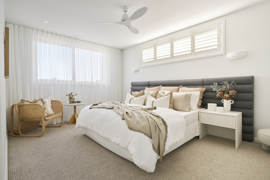 A designer staircase with large architectural voids offers plenty of natural light into the home, providing spacious, relaxing interiors while maintaining a sense of privacy throughout the home.