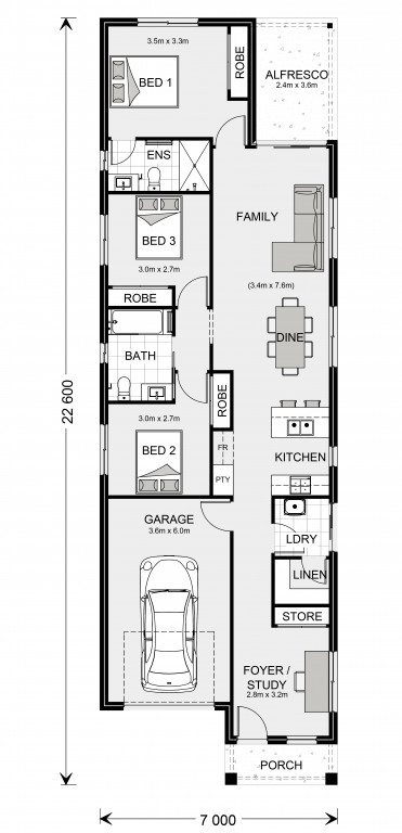 For optimal site use, this design is best positioned on sites with the north aspect towards the rear and side of the home, providing sustainable and comfortable living conditions throughout the year.