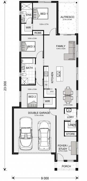 For optimal site use, this design is best positioned on sites with the north aspect towards the rear and side of the home, providing sustainable and comfortable living conditions throughout the year.