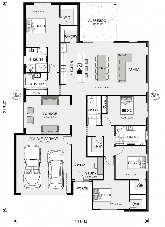 For optimal site use, this design is best positioned on sites with the north aspect towards the rear and side of the home, providing sustainable and comfortable living conditions throughout the year.