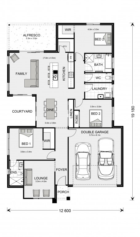 For optimal site use, this design is best positioned on sites with the north aspect towards the front and side of the home, providing sustainable and comfortable living conditions throughout the year.