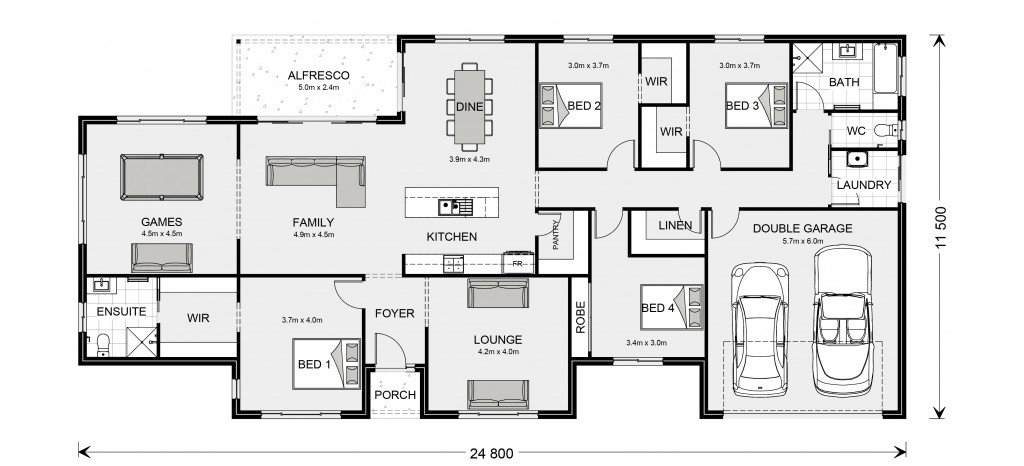 For optimal site use, this design is best positioned on sites with the north aspect towards the rear and side of the home, providing sustainable and comfortable living conditions throughout the year.