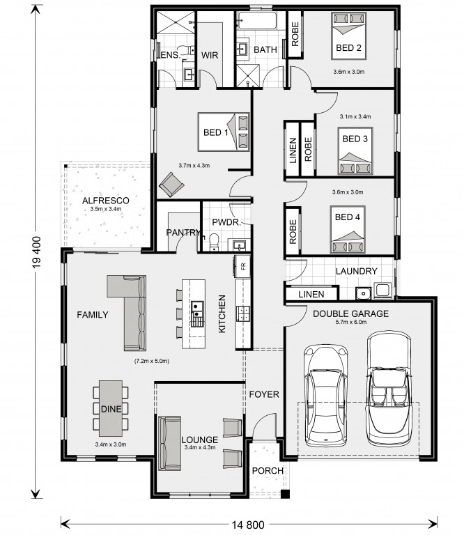 For optimal site use, this design is best positioned on sites with the north aspect towards the front of the home, providing sustainable and comfortable living conditions throughout the year.