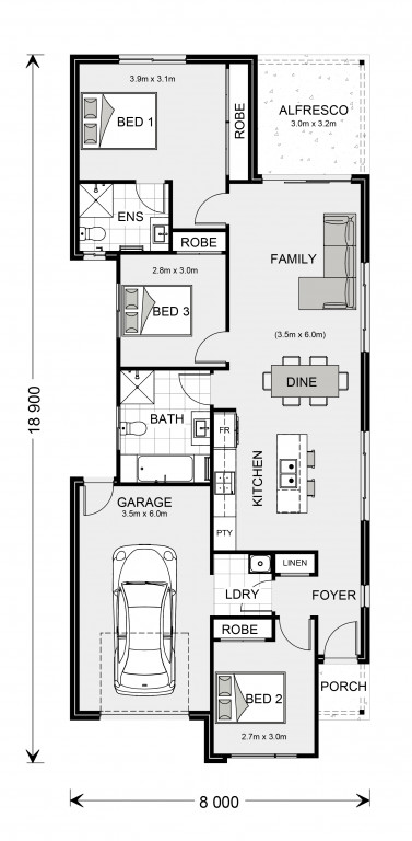 The Robina is a delightful, yet compact home cleverly designed to make maximum use of space on narrow sites.