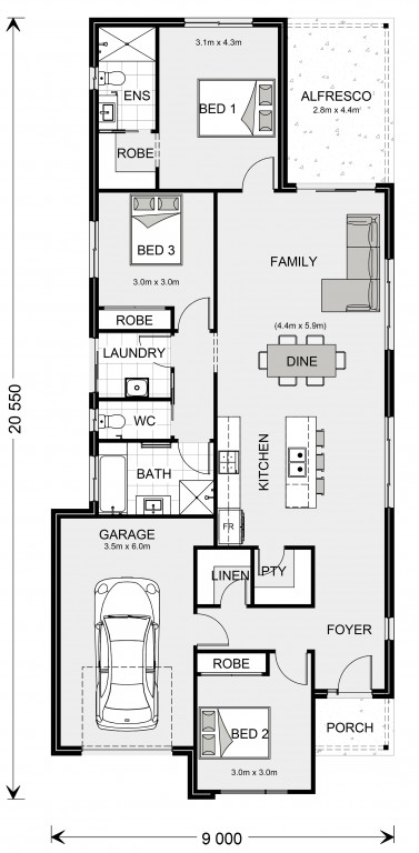 The Robina is a delightful, yet compact home cleverly designed to make maximum use of space on narrow sites.