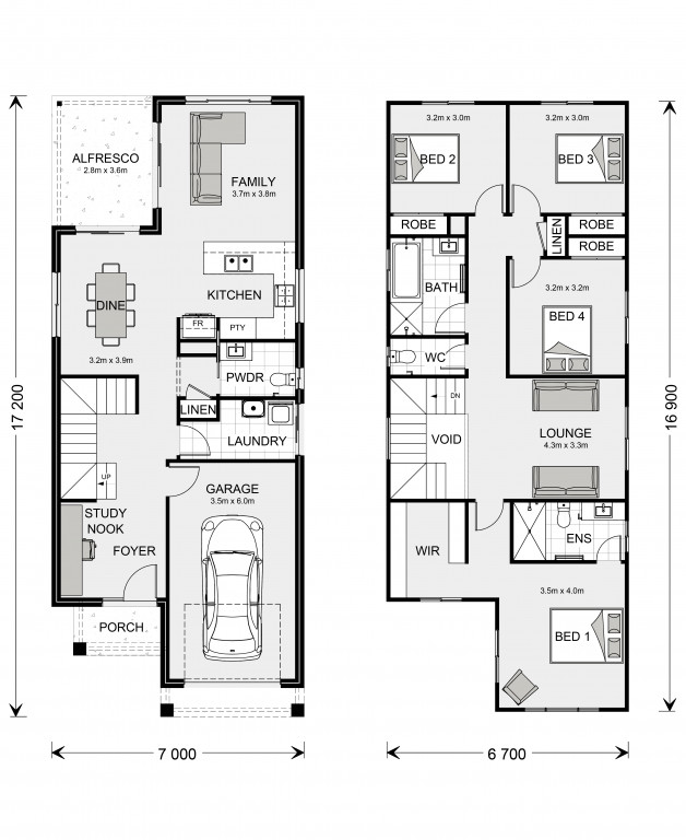 Discover a home that redefines compact family living with style and functionality. Designed to suit narrow lots, this two-storey layout offers a perfect blend of open-plan living and private retreats, creating a space that feels both spacious and connected.