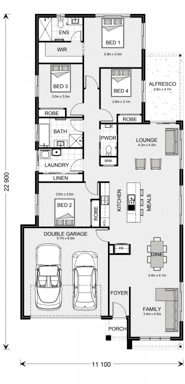 For optimal site use, this design is best positioned on sites with the north aspect towards the side of the home, providing sustainable and comfortable living conditions throughout the year.