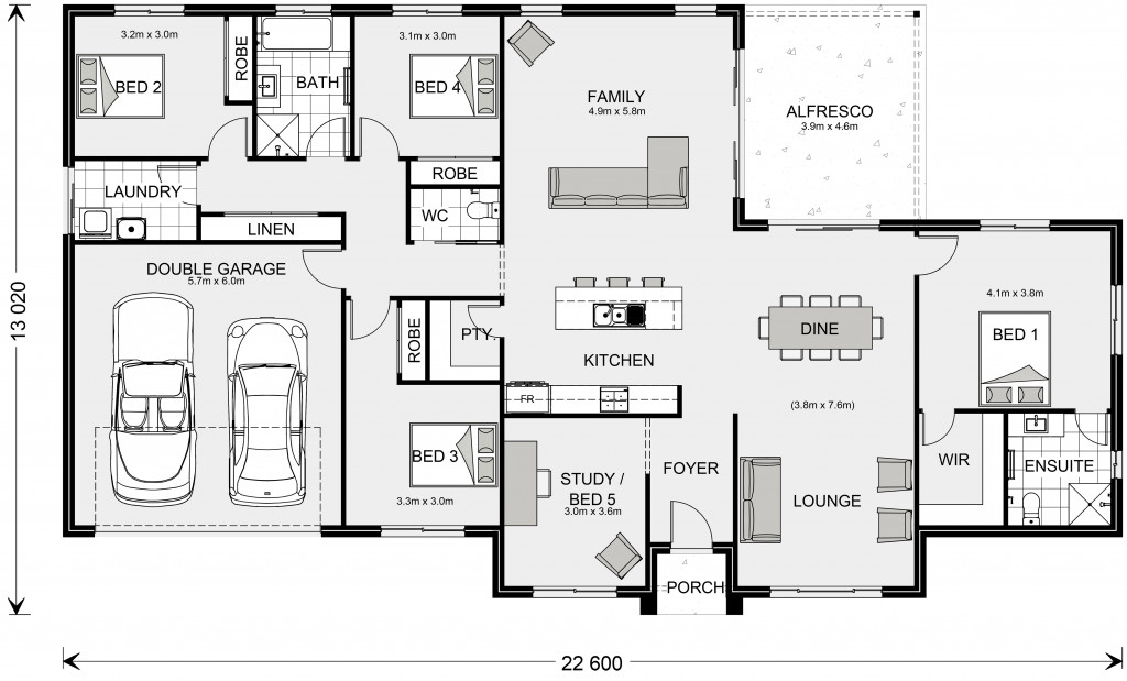 The Wishart design boasts generously sized bedrooms, each thoughtfully designed to provide comfort and privacy. The master suite is a true retreat, privately located on one side of the home features a luxurious ensuite and a walk-in robe, offering a serene escape from the hustle and bustle of daily life. On the opposite side, additional bedrooms share a central bathroom, ensuring convenience and privacy for all family members.