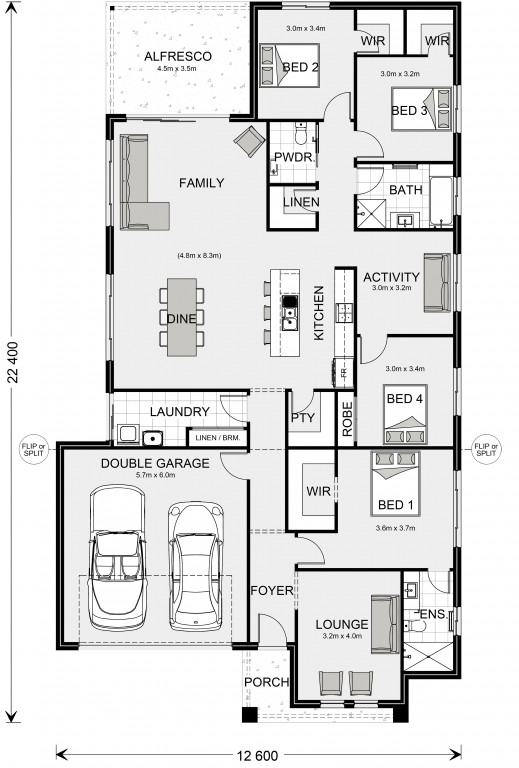 For optimal site use, this design is best positioned on sites with the north aspect towards the front and side of the home, providing sustainable and comfortable living conditions throughout the year.