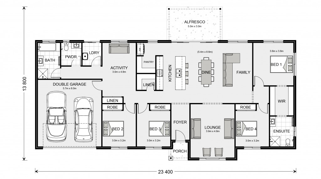 For optimal site use, this design is best positioned on sites with the north aspect towards the rear and side of the home, providing sustainable and comfortable living conditions throughout the year.