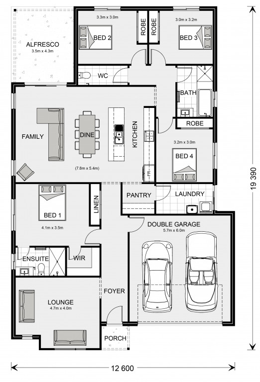 For optimal site use, this design is best positioned on sites with the north aspect towards the rear & side of the home, providing sustainable and comfortable living conditions throughout the year.