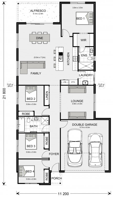 – Floor plan optimised for a north-facing aspect to maximise natural light and passive solar heating