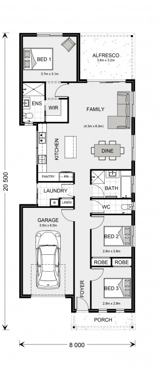 Compact and stylish, the Amandari is designed to suit narrow sites while optimizing space for practical living.