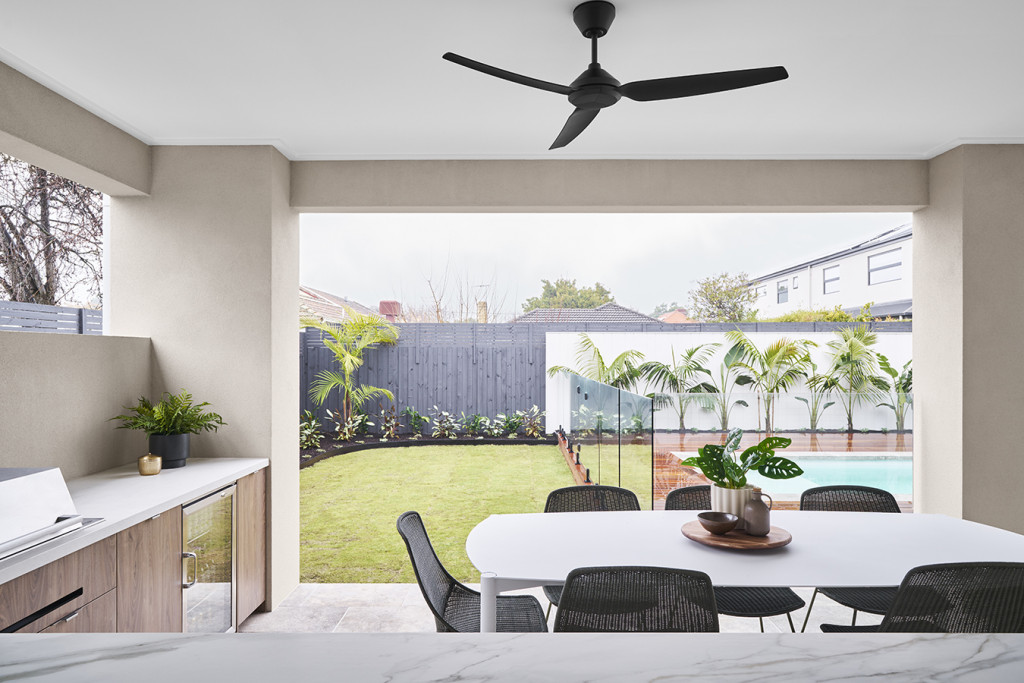 Entertain family and friends in the large open plan living space where a generous Kitchen and Butler’s Pantry connect effortlessly with the family and dining areas which extend outdoors to the rear covered Alfresco.