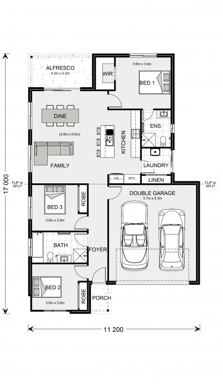 For optimal site use, this design is best positioned on sites with the north aspect towards the rear & side of the home, providing sustainable and comfortable living conditions throughout the year.